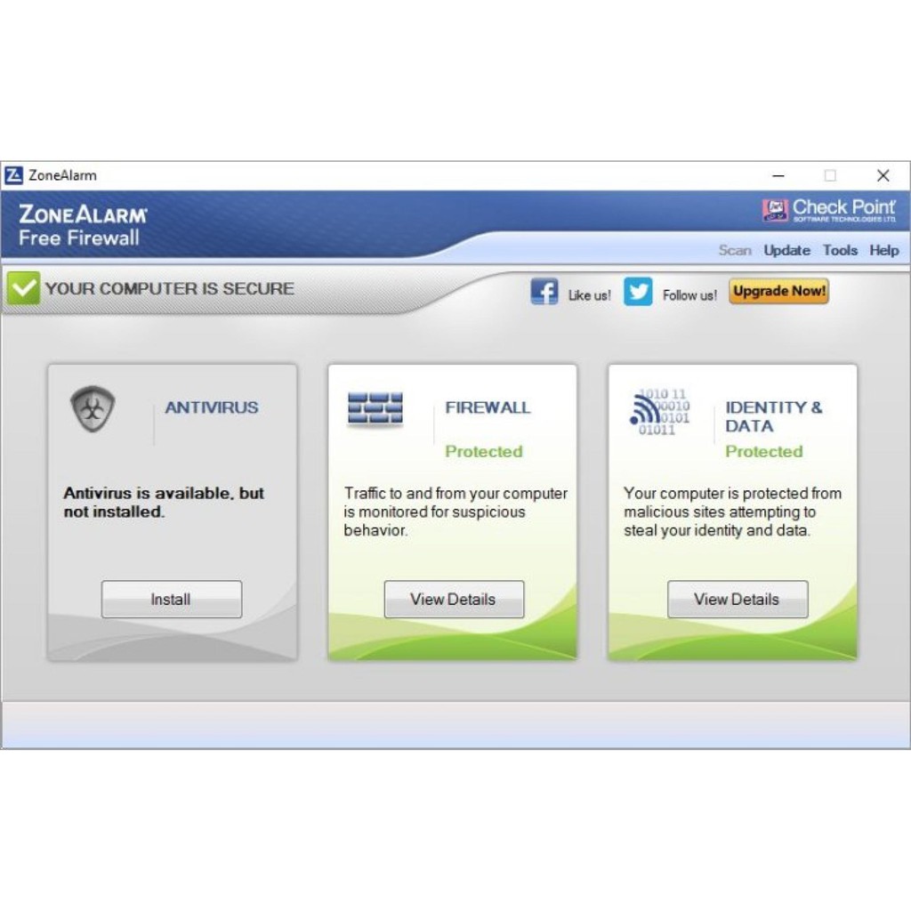Download ZoneAlarm Free Antivirus + Firewall - MajorGeeks ZoneAlarm Free Antivirus + Firewall. 15.8.189.19019. ZoneAlarm Free Antivirus + Firewall is an all-in-one free security that seamlessly integrates ZoneAlarm Antivirus with Firewall. Its Antivirus/Anti-Spyware Engine will detect and block many viruses, spyware, Trojan horses, worms, bots, and rootkits. While the advanced two-way firewall ...