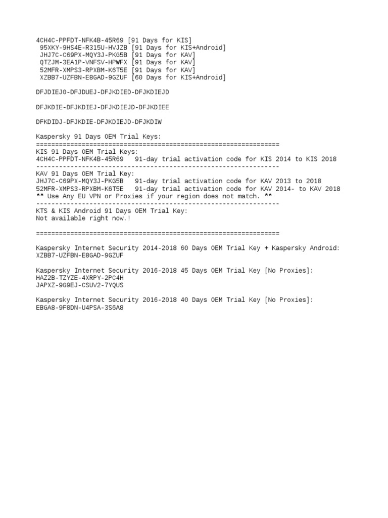 | Download Free Antivirus & VPN | 100% Free & Easy Join 435 million others and get award-winning free antivirus for PC, Mac & Android. Surf safely & privately with our VPN. Download Avast today! › 18530 › kaspersky-internetKaspersky Internet Security 2023 One Year Activation Code ... Dec 16, 2022 · Please send me an activation code Kaspersky Internet Security 2016 16.0.0.614 serial Key S [ Reply ] I love Kaspersky, but do not like the price, I love your very detailed review, explained more then others, Please I would like the 365 day activation code.