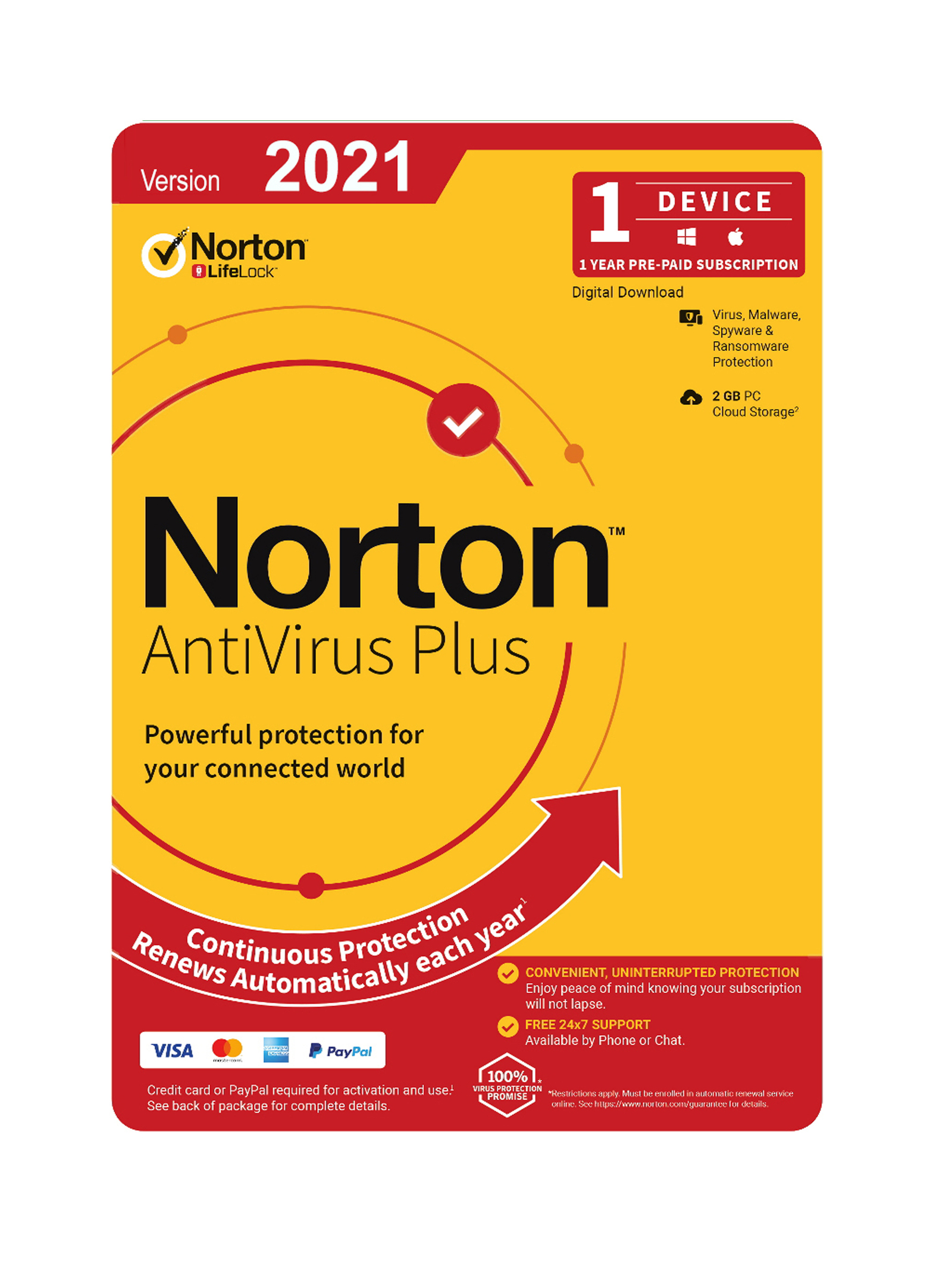 Norton AntiVirus Plus - 2023 Ready - Antivirus software for 1 Device 1 ... Norton AntiVirus Plus - 2023 Ready - Antivirus software for 1 Device 1-Year Subscription - Includes Password Manager, Smart Firewall, PC Cloud Backup [Download] : ... Minimum System Requirements: Operating System: Windows 10, Windows 8, Windows 8.1, Windows 7, Mac OS X (All)